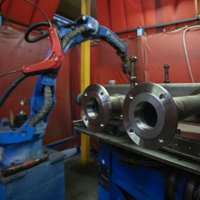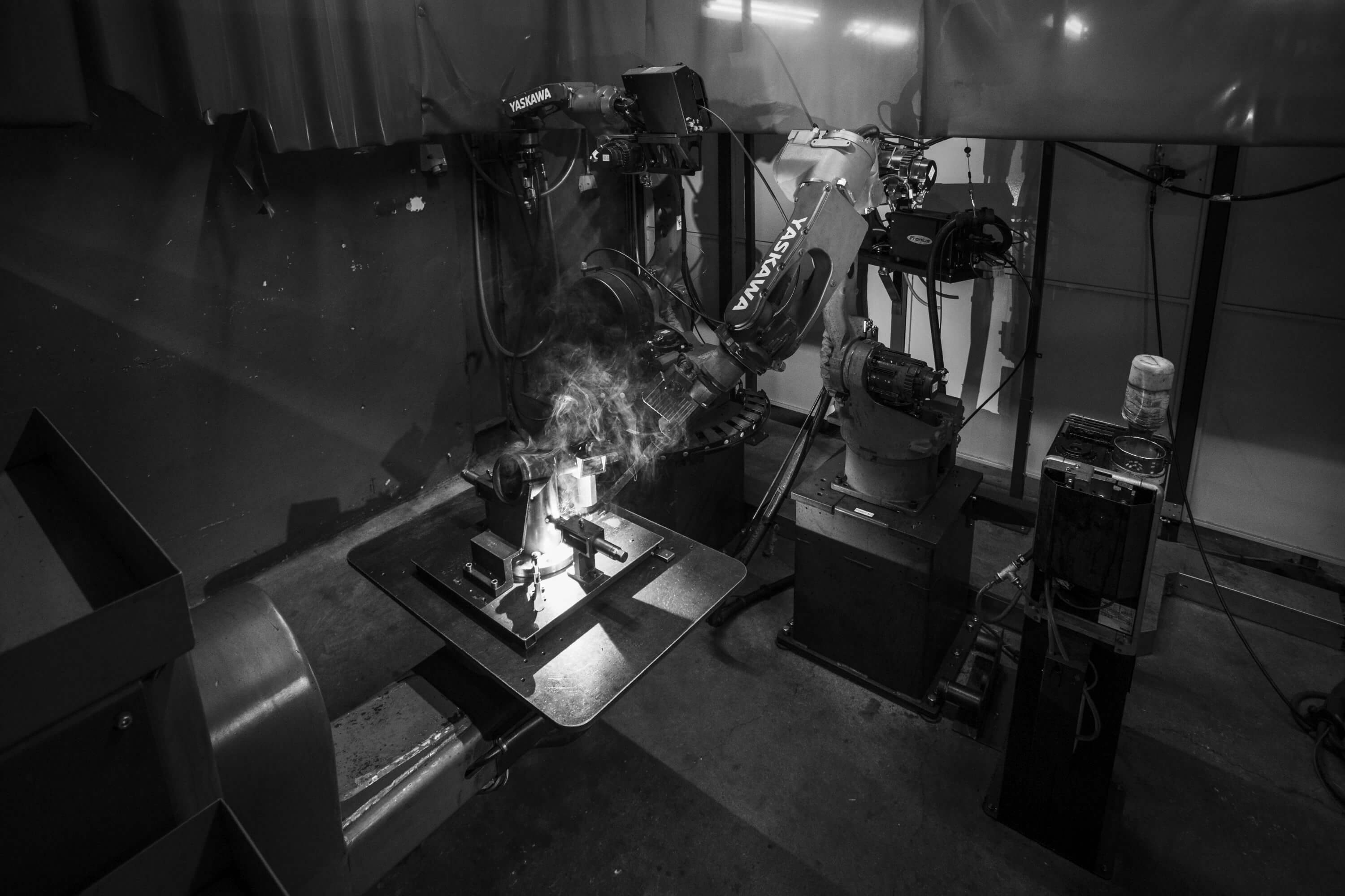 MIG-, MAG- und TIG-Schweißen stehen im Zentrum unserer Montageprozesse. Wir kombinieren das Know-how unserer qualifizierten Schweißer mit der Leistungsfähigkeit von 8 hochmodernen Schweißrobotern, ausgestattet mit: